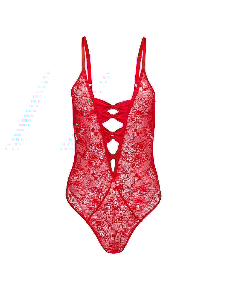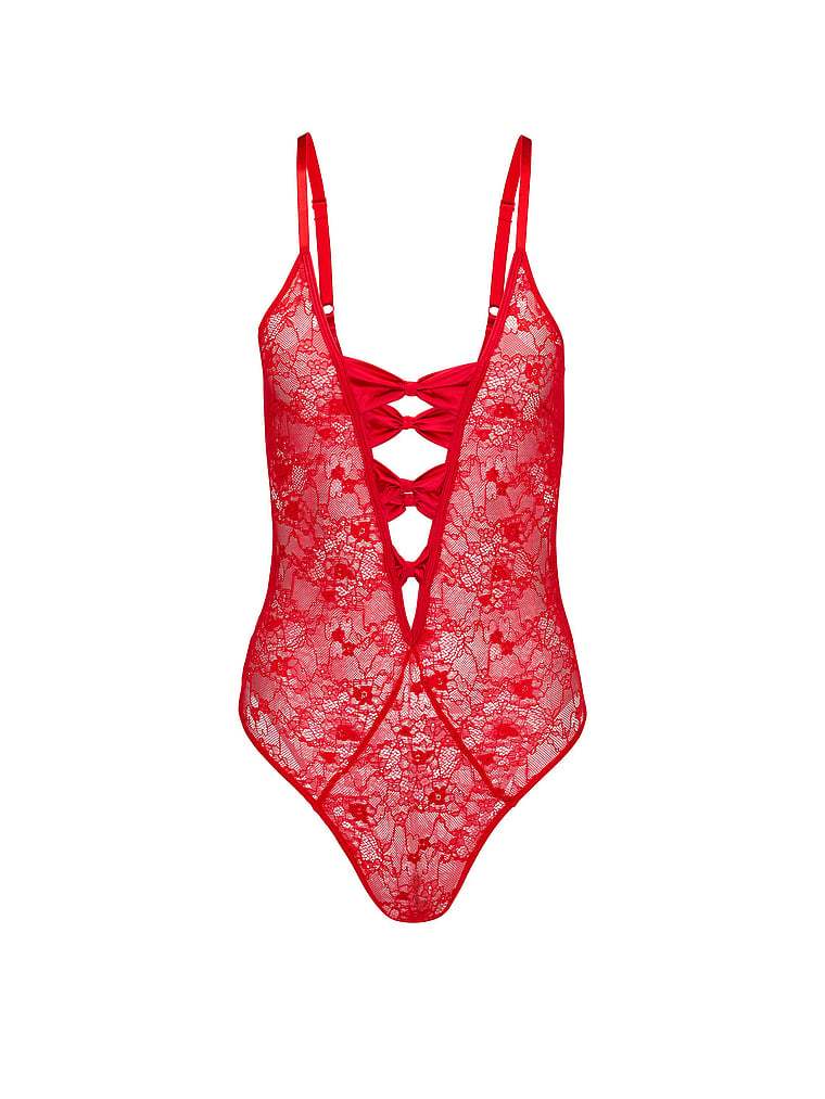 A plunging V-neck and lace construction make this Bodysuit the perfect look for romantic nights in and out.