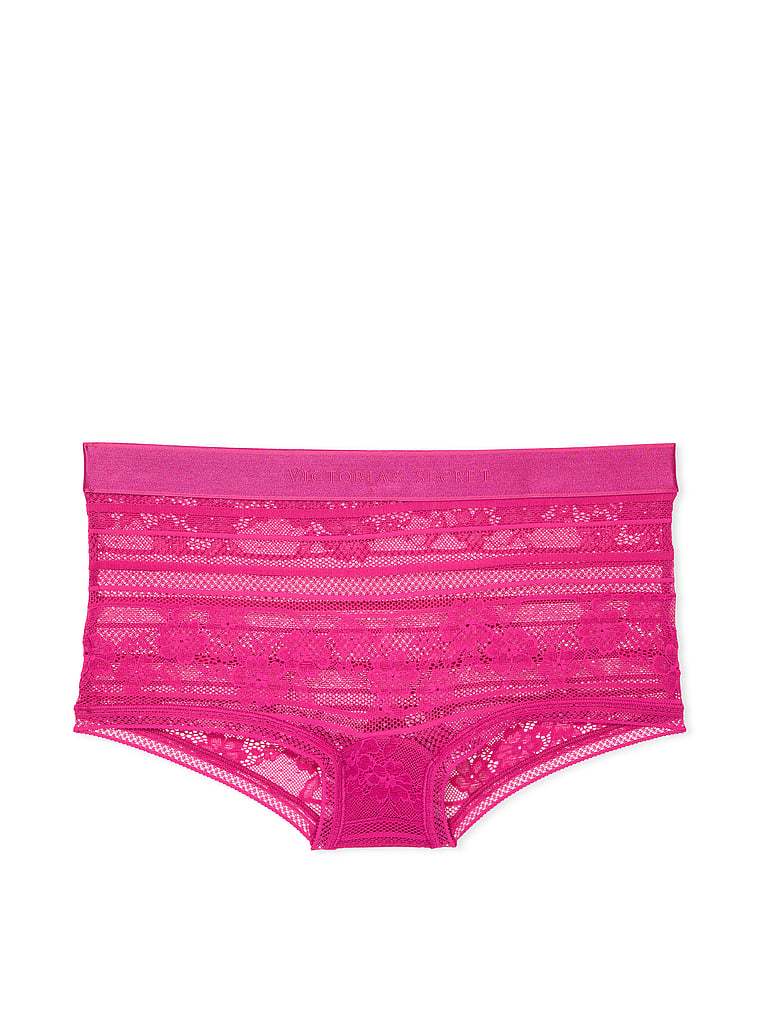 Feminine floral lace is topped off with our signature logo waistband for a new twist on a comfy boyshort.