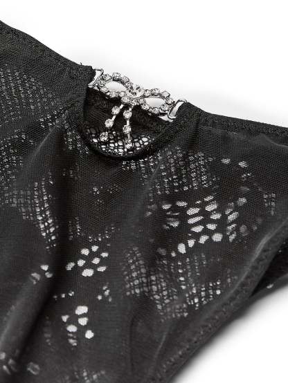 Our ultra-soft lace Panty gets dressed up with a glittering rhinestone bow in back. Incredibly comfortable, it's a must-have addition to your collection.