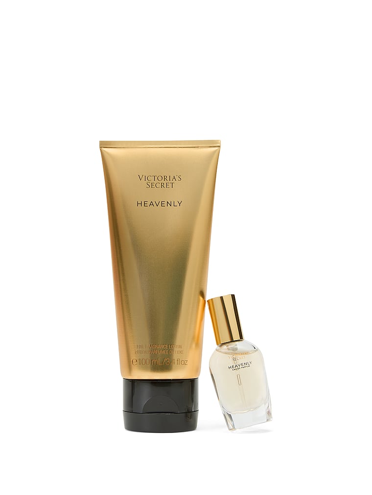 Celebrate your radiance with Heavenly, a luminous blend of white florals and golden woods. Wherever you go, this duo goes, too.