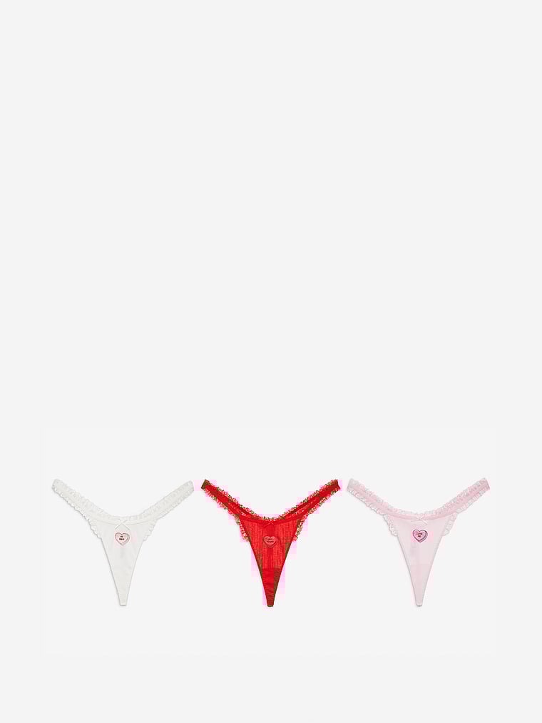For Love & Lemons 3-Pack Candy Heart Thong Panties