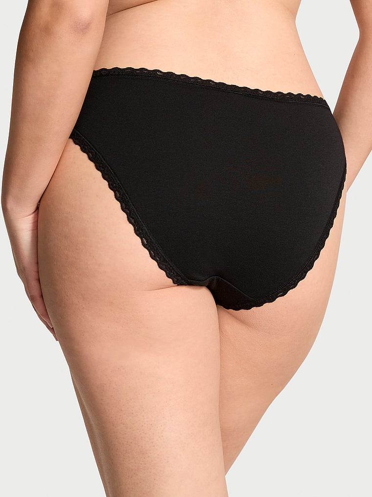 Our everyday bikini comes in a buttery-soft, cotton-modal blend that's finished with a fun metallic print and lace trim.