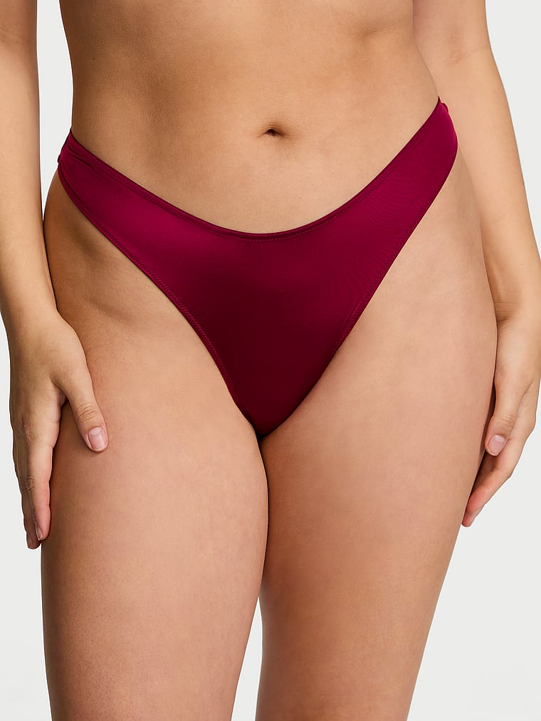Strappy back details highlight our new star hardware on this smooth style, complete with a flattering high-cut leg and dipped front.