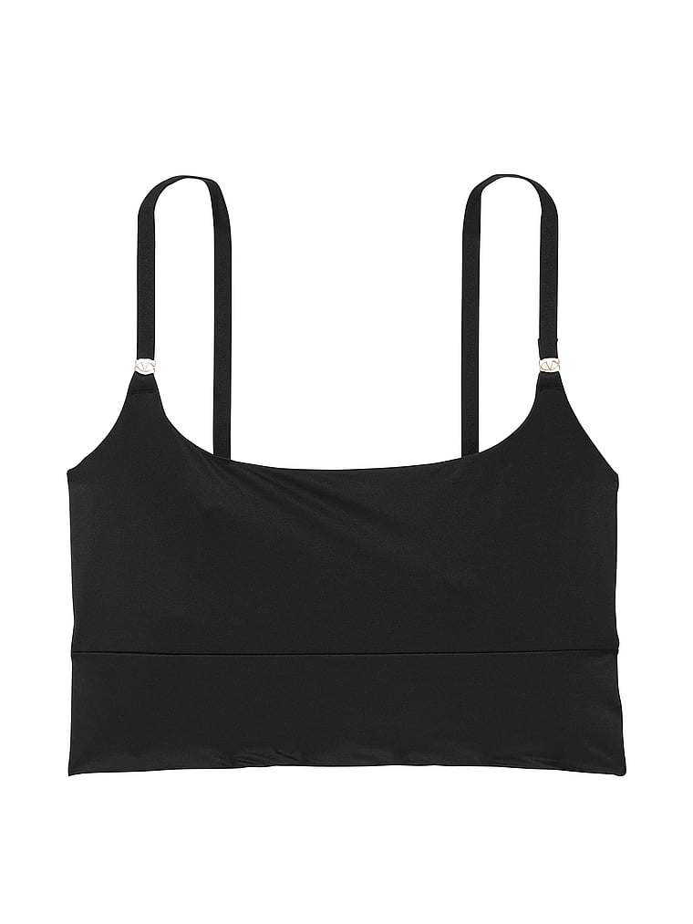Gold-tone hardware at the straps adds a luxe touch to this easygoing, longline piece. An ideal base layer, it provides comfy, smoothing support and seamless coverage. Pair with the matching bike shorts for the complete, sleek downtime look.