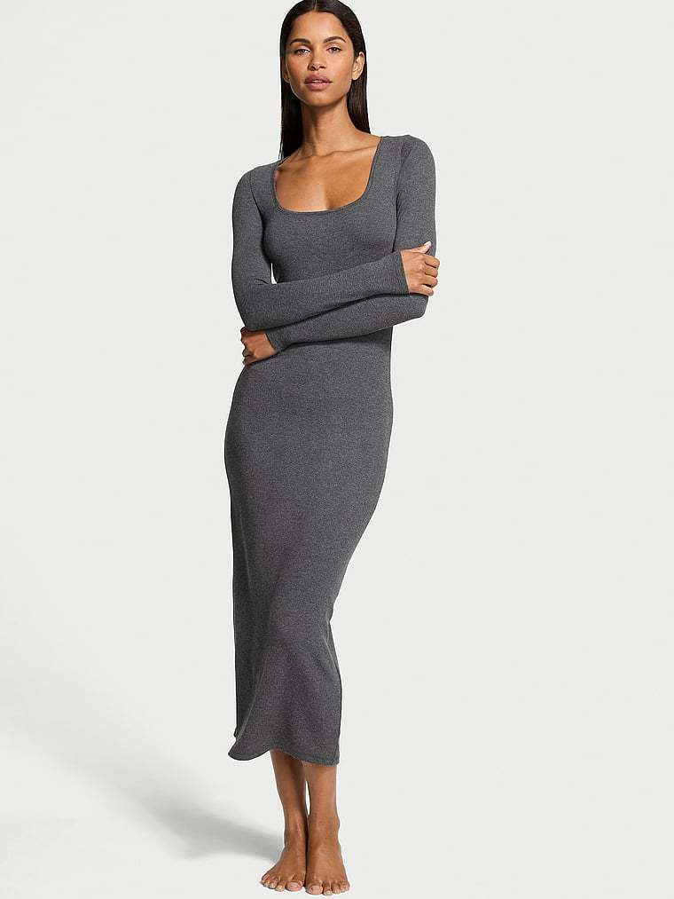 Vithtctoria's Sethtcret Ribbed Modal Long-Sleeve Slip Dress
