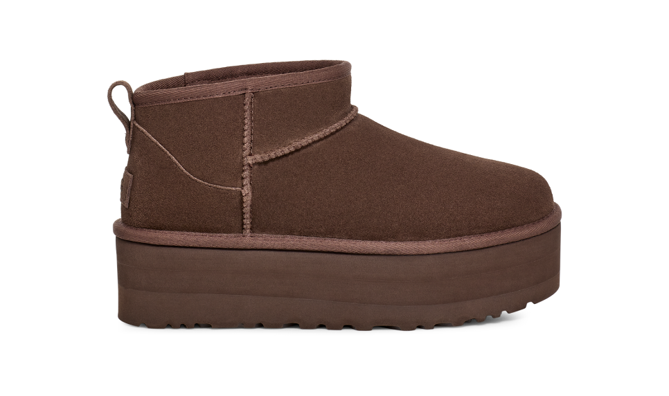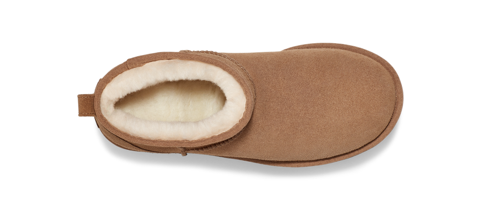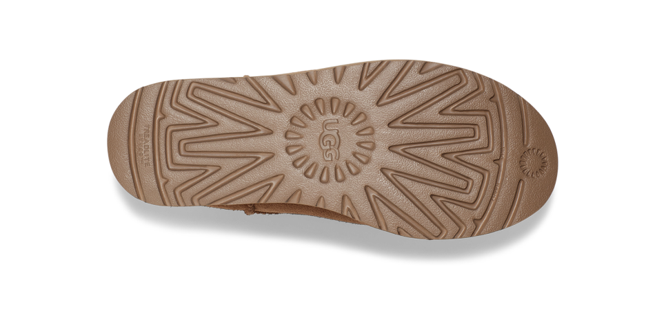 - The UGG® logo, embossed suede heel label